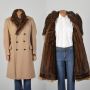 38-40 Small-Medium 1970s Mens Coat Tan Wool Brown Mink Fur Lined Double Breasted Overcoat