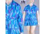 3X 4X Plus Vintage 1960s Blue Bright Op Art Drop Waist Mini Dress Jacket Set