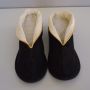 40s Lady Pauline Paddies Black Corduroy Slippers With White Fold Down Cuffs, Unworn, Size 6.5