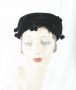 50s Black Velvet Pillbox Hat w/ Ball Fringe by Vicki Jo