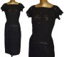 50s Cocktail Dress, Black Pintucked Cotton and Embroidered Eyelet Wiggle Dress, XS Small