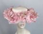 50s Pink Straw Circle Brim Hat w/ Silk Florals - Hovland-Swanson, Sz 22