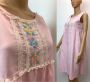 60s 70s Pink Nightgown | Nightie with Lace & Embroidery | Semi Sheer Summer | Katz Shift | XS/S