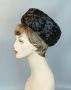 60s Black Cello Straw High Rise Pillbox Hat by Miss Eileen