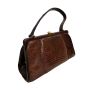 60s Brown Lizard Leather Top Handle Bag – Vintage Mod Frame Purse with Gold Clasp