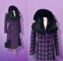 60’s Purple Woven Wool Coat with Genuine Fur Peplum and Collar Plaid