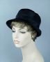 70's Black Straw Brimmed Cloche Hat, Sz 21 1/2