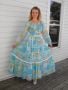 70s Floral Hippie Blue Print Maxi Dress Lori Ann Spring XS