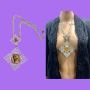 70s King Tut Mania Large White & Gold Pendant Necklace