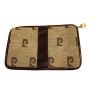 70s Logo Brown Leather and Fabric Zip Pouch Bag FRANCE