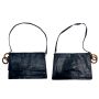 70s MOD Navy Faux Leather Flap Bag Clutch w Tortoise Rings