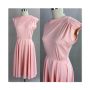 70s Peach Polyester Full Skirt Dress, Sears, Sz S-M