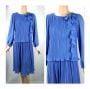 70s Sky Blue Crystal Pleated Long Sleeve Dress by Darcy, Sz 9/10