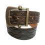 70s Wide Dark Brown Tooled Leather Belt Large Brass Buckle | 33 - 37.75''