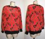 80s Oversized Jewel Print Blouse | Silky RED Sweatshirt Style Scarf Print Pullover