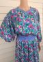 80s Silk Floral Dress Polka Dot Print M Purple Blue Periwinkle