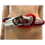80s Statement Belt – Red Black White Rope Cord with Polka Dot Beads & Wood Buckle – Adjustable Waist