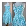 80s Teal and White Floral Sundress with Shirred Bodice, Removeable Shoulder Straps, Sz 9/10 VFG