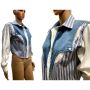 90s Blue & White Denim Crop Western Shirt