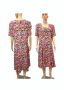 90s Liz Claiborne Petites Floral Rayon Midi Dress | Bohemian Boho | Vintage 14 P | Fits M/L