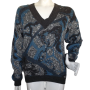 Abstract Pattern Sweater, M, Acrylic-Wool, V neck, Long sleeves Black, grey, blue