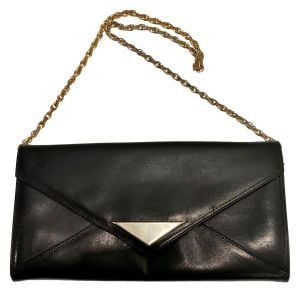 - No label present80s Black Leather Clutch Shoulder Bag with Chain Strap and Gold Triangle Accent$38.00Add to Favorites