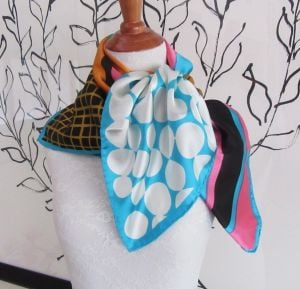 - No Label Present1960’s Ultra Mod Polka Dot Head Scarf, Blue White and Orange Polka Dots, 46” Long$26.00Add to Favorites