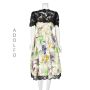 ADOLFO Vintage 2-Piece Colorful Crayon Print Ivory Silk Skirt and Bouse with Black Lace Yoke SZ 8-10