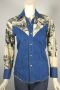 Amazone vintage comic novelty print denim 70s snap front cowgirl shirt top