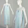 *AS IS* Medium 1970s Baby Blue Nightgown Lace Trim Sleeveless Silky Nylon Maxi Deadstock DAMAGED
