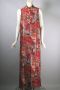 Asian garden novelty print cotton 1960s maxi dress coral sleeveless