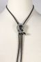 Black and clear rhinestones bolo tie 1980s braided leather cord