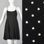 Small 1990s Mini Dress Black Polka Dot Strappy Short Babydoll Summer Sundress