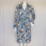 Blue Floral Vintage Dress, S/M. Wrap, Wide collar, Cuffed, Sears Jr. Bazaar