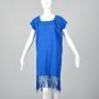 Small 1980s Dress Blue Beach Fringe Hem Poncho Summer Swimsuit Cover Up