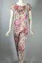 Bright pink floral print cotton capri pant and blouse 2-piece set 1950s XXS-XS
