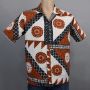 Brown Black & White Hawaiian Vintage 60s Barkcloth Shirt S M