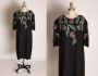 Deadstock 1980s Black, Pink and Green Floral Short Sleeve Silk Bead and Sequin Dress by Denise Elle