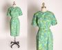 Early 1960s Blue and Green Short Sleeve Floral Belted Dress - L