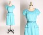 Early 1960s Turquoise Blue Short Sleeve Flared Belted Skirt Dress by Harzfelds - XS