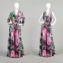 (&FASHCON) Large 1970s Three Piece Palazzo Pant Wrap Top Outfit Floral Jacket Top Wide Leg Pant Set