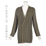 GIORGIO ARMANI Extra Long Black & Olive Knit Striped Cardigan Blazer Size M/L 10-12,