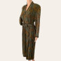 Green Print Silk Dress 80s Long Sleeve Vintage 10 M Gillian