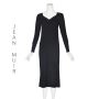 JEAN MUIR Black Jersey Knit Slinky Midi Dress with Lambskin Neckline SIZE 6-8 M