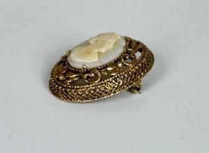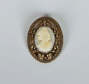 - No Label Present1950’s Mid Century Bright Gold Floral Sweater Clip with Rhinestones/Pearl, 6.5” Long$36.00Add to Favorites