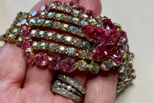- No Label PresentVintage Brightly Colored Shell Statement Bracelet, Pearlescent Pink Blue Orange$24.00Add to Favorites