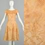 L | 1950s Short Sleeve Fit and Flare Gold Lace Evening Cocktail Dress