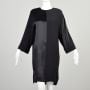 L-XL 1980s Black Dress Two-Tone Shiny Matte Satin Loose Color Block Evening Cocktail LBD