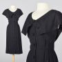 Large 1950s Black Dress Marshall Fields 28 Shop Button Front Shawl Collar LBD