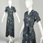 Large 1940s Short Sleeved Cold Rayon Novelty Paris Print Dressing Gown